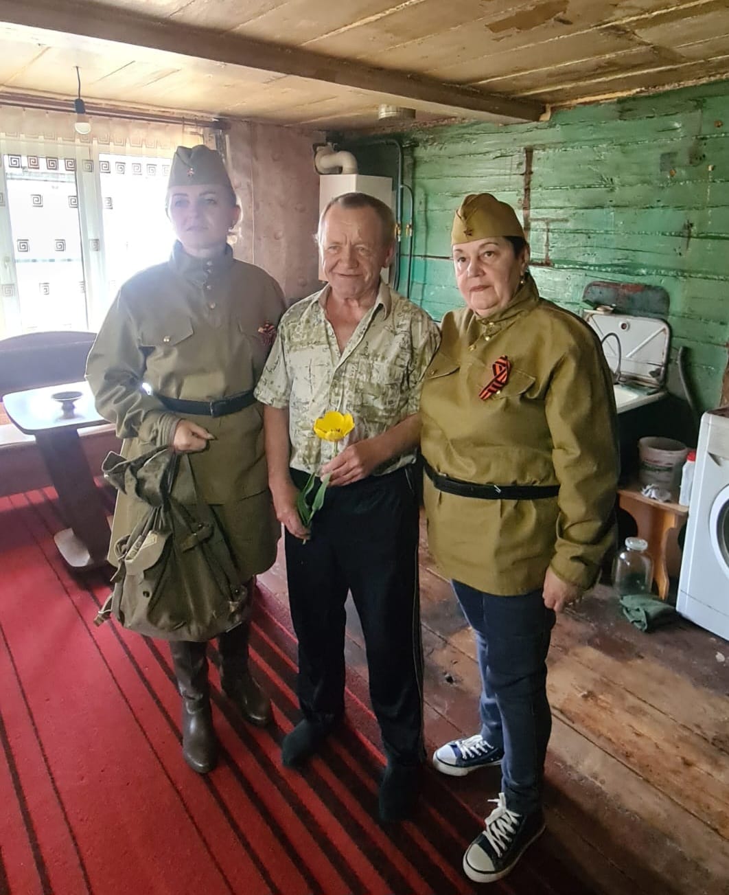 Социальные и медицинские работники переоделись в гимнастерки, взяли с собой сухой паек, цветы и хорошее настроение. Они отправились поздравлять своих бабушек и дедушек: вручили живые цветы и Георгиевские ленточки — символ памяти и уважения к подвигу народа, угостили подопечных горячим чаем и хлебом с салом. Эти продукты в военные годы согревали и давали силы. Читали стихи. Особенно тронуло стихотворение Константина Симонова «Жди меня», строчки которого напоминают, что даже в самые трудные времена нужно надеяться и ждать.