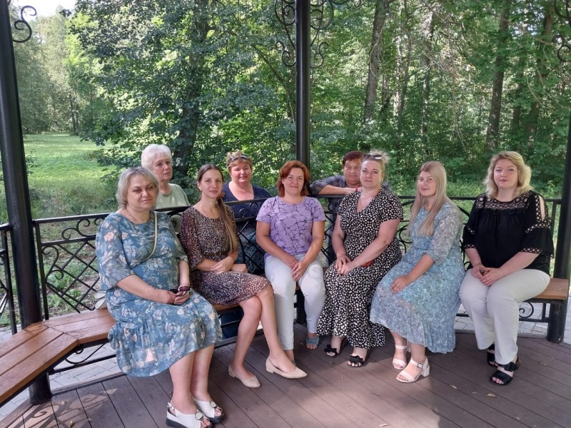 Сотрудники погуляли по тропинкам и аллеям парка, посмотрели на само здание усадьбы и больницу. Обе находятся хоть и в заброшенном состоянии, но снаружи вполне сохранили былую красоту. От внутреннего убранства там, конечно, ничего не осталось. Но погулять возле усадьбы точно стоит. Там находится красивая беседка, в которой были сделаны фотографии сотрудников.